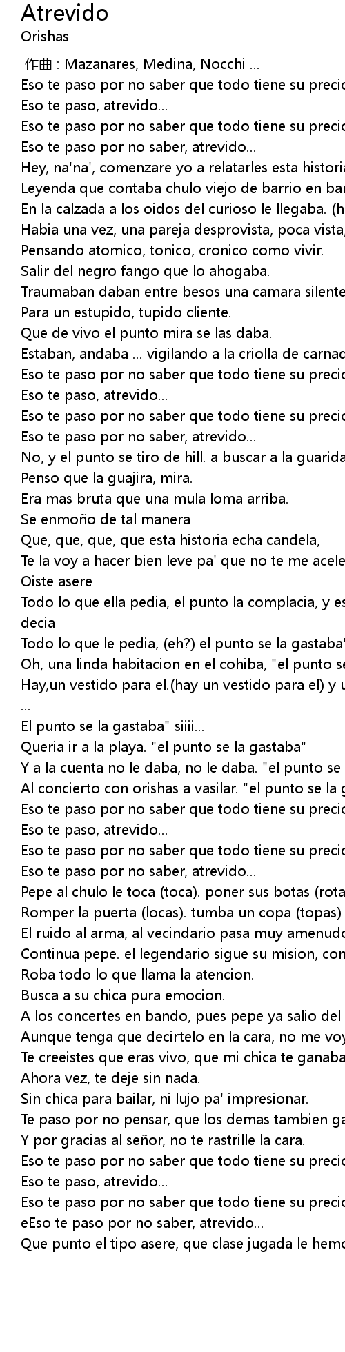 | [00:55.70] | Eso te paso por no saber que todo tiene su precio atrevido, |