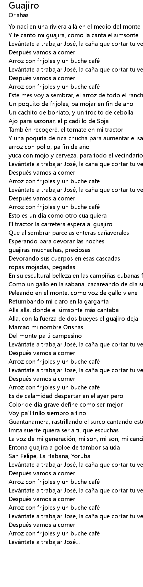 | Levántate a trabajar José, la caña que cortar tu ves | |