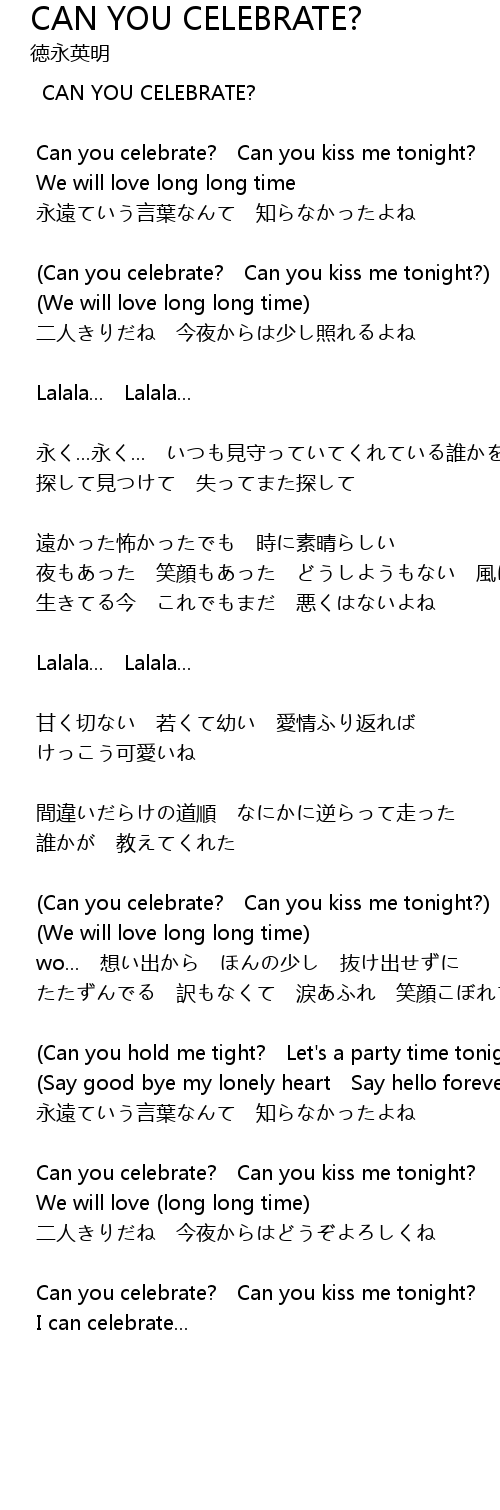 | (Can you celebrate? Can you kiss me tonight?) | |