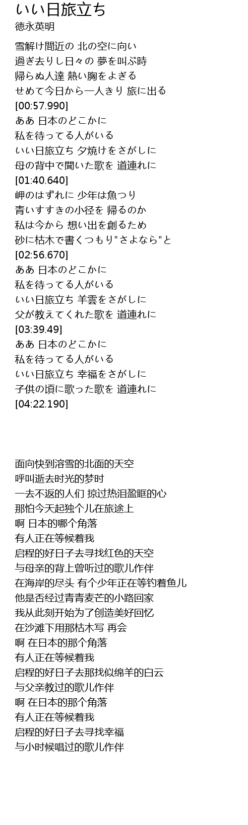 | [04:02.700] | いい日旅立ち 幸福をさがしに |