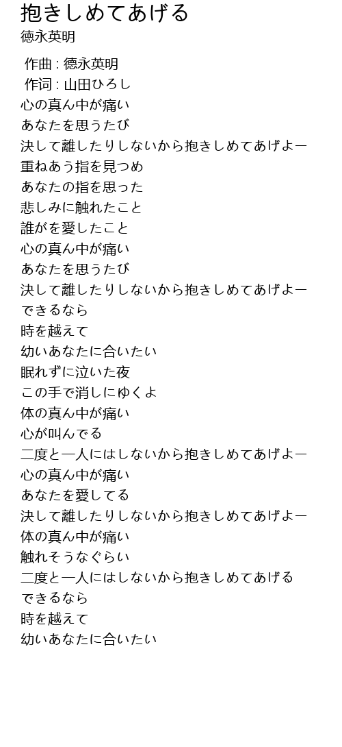 | [00:18.480] | 決して離したりしないから抱きしめてあげよー |