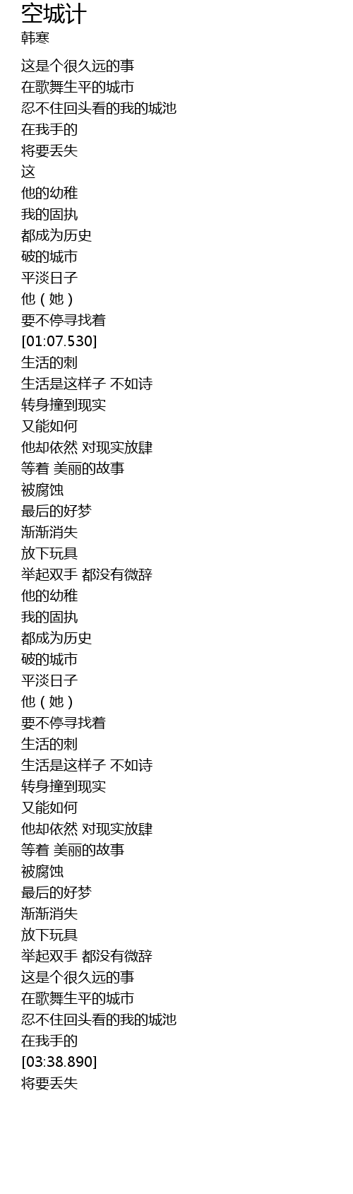 | [03:29.400] | 忍不住回头看的我的城池 |