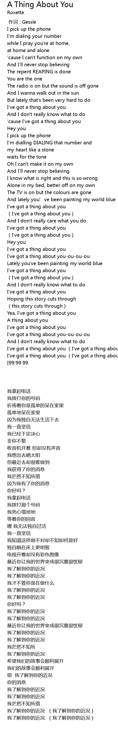 | [03:00.32] | A thing about you |