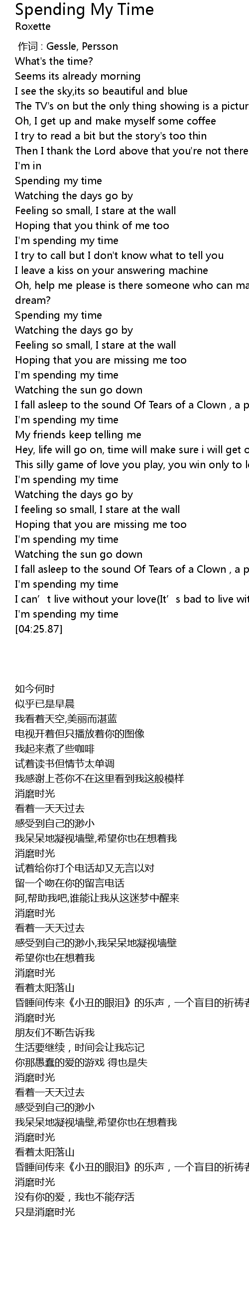 | [00:39.27] | Spending my time |