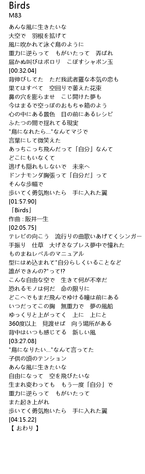 | [01:59.75] | 「Birds」 |