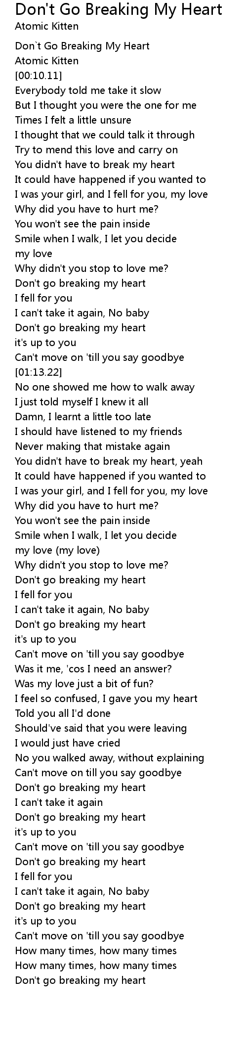 Don`t Go Breaking My Heart |