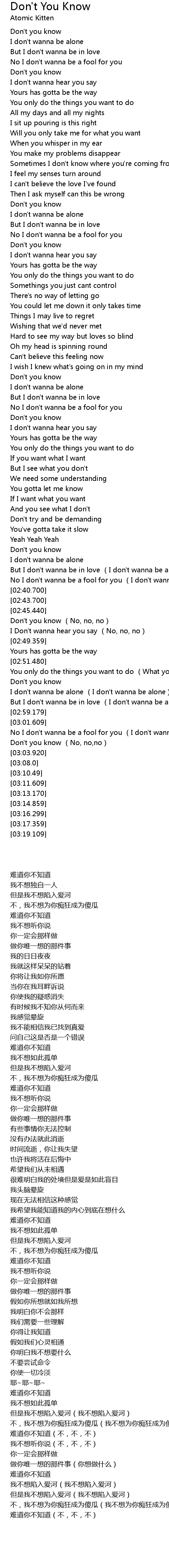 | [03:03.399] | Don't you know (No, no,no) |