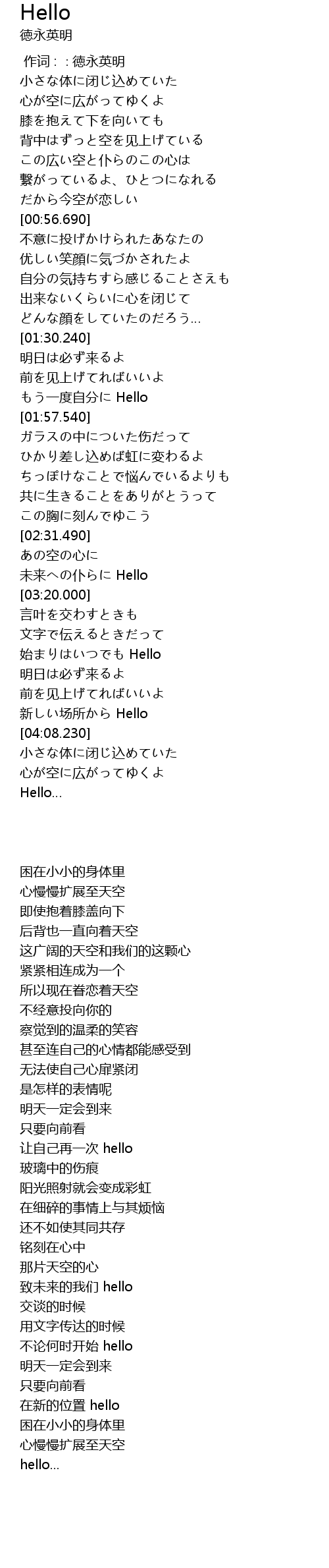 | [03:36.900] | 始まりはいつでも Hello |