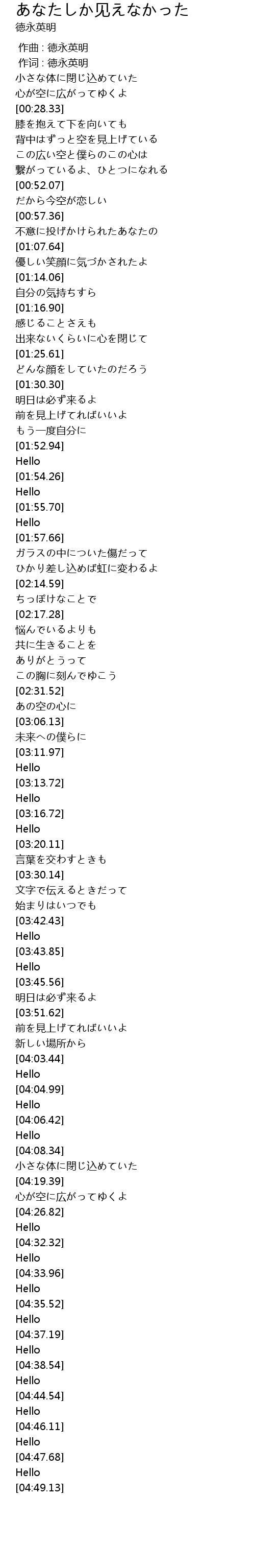 | [04:05.73] | Hello |