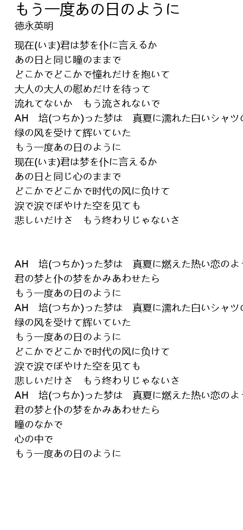 | Song | もう一度あの日のように |