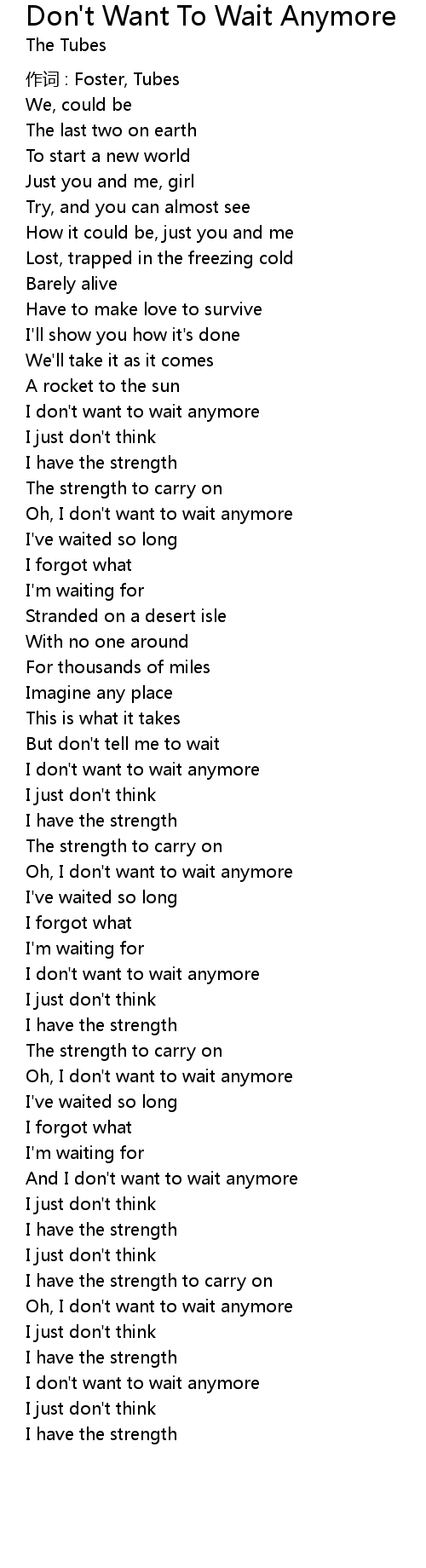 | Oh, I don' t want to wait anymore | |
