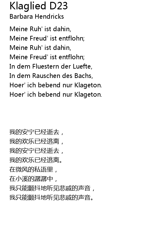 | [00:46.35] | Hoer' ich bebend nur Klageton. |