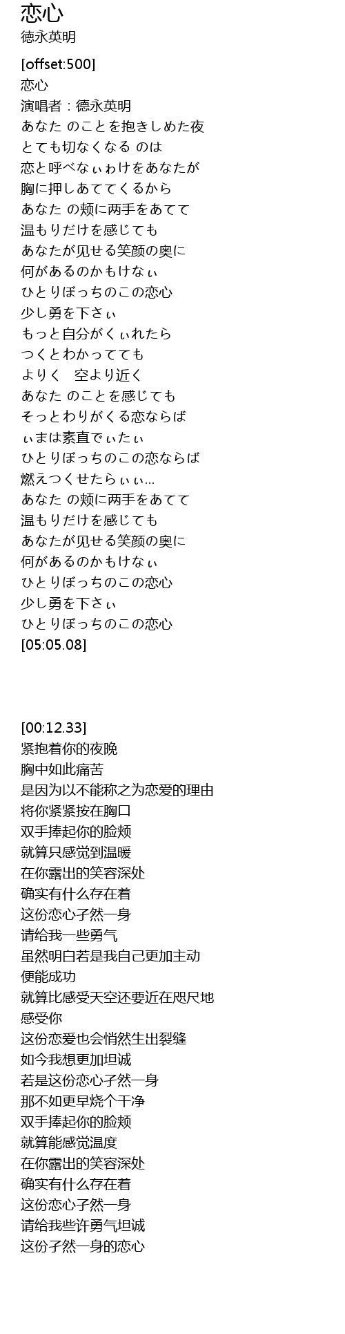| [00:12.33] | 演唱者:德永英明 |