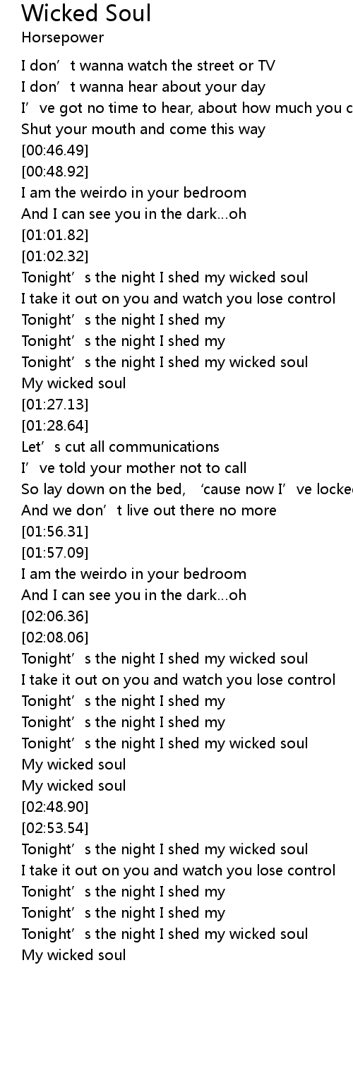 | [03:00.44] | Tonight’s the night I shed my wicked soul |