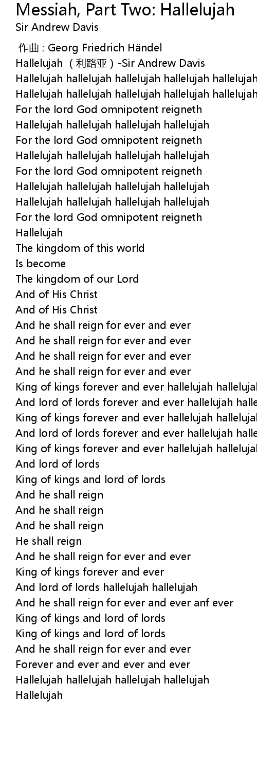 | [00:00.00] | Hallelujah lì lù yà Sir Andrew Davis |
