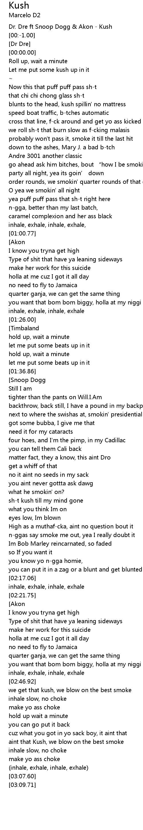 | [00:03.21] | Let me put some kush up in it |