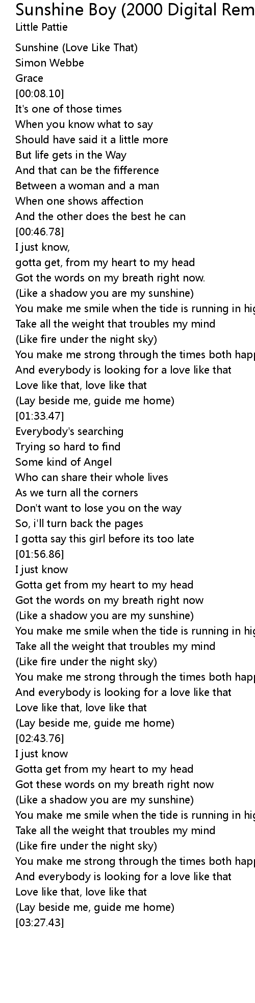 [00:00.00] Sunshine (Love Like That)