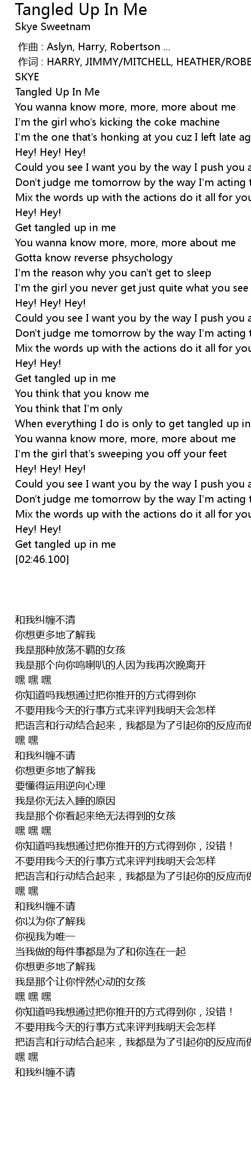 | [00:46.100] | Get tangled up in me |