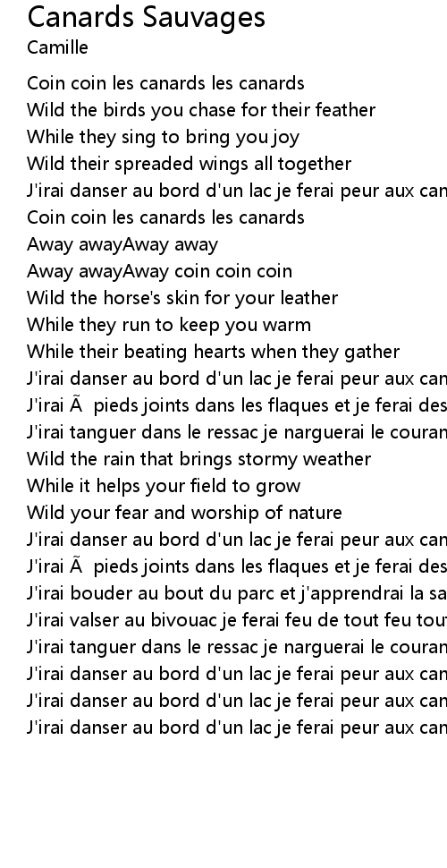 | J' irai danser au bord d' un lac je ferai peur aux canard sauvages |