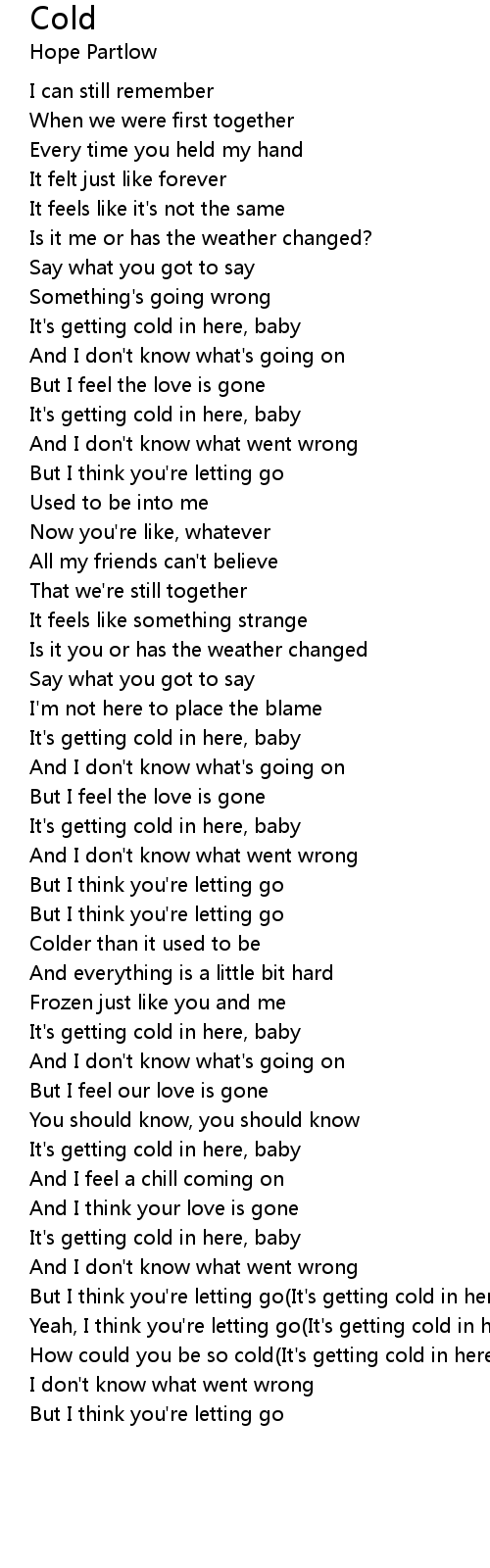 Yeah, I think you're letting go(It's getting cold in here, baby) |