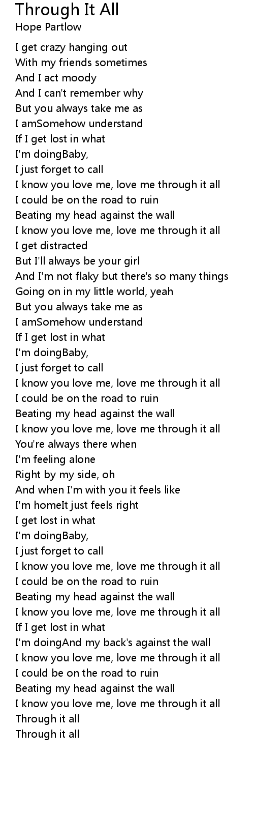 I know you love me, love me through it all |