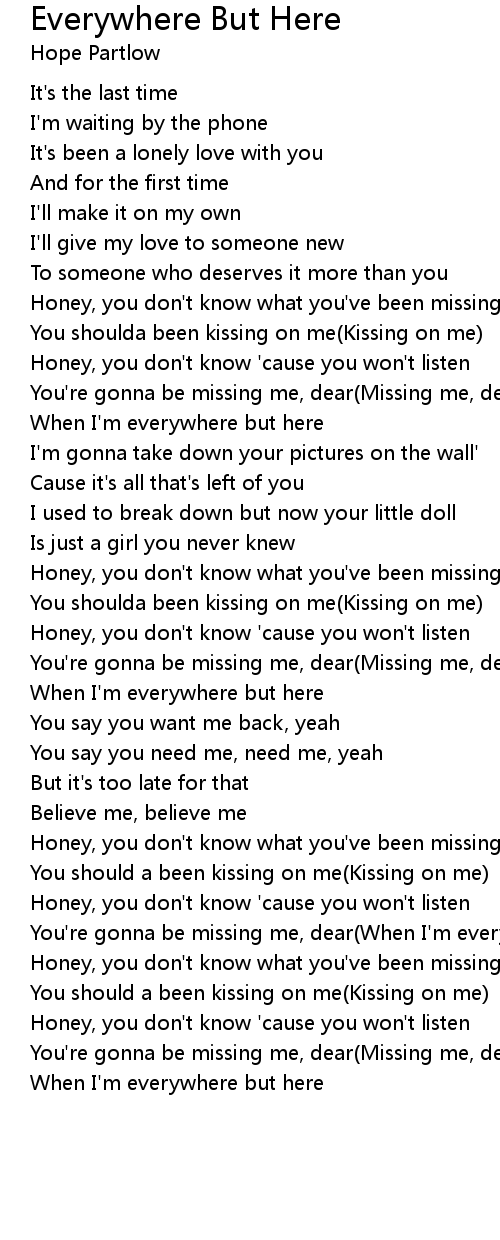 You're gonna be missing me, dear(When I'm everywhere but here) |