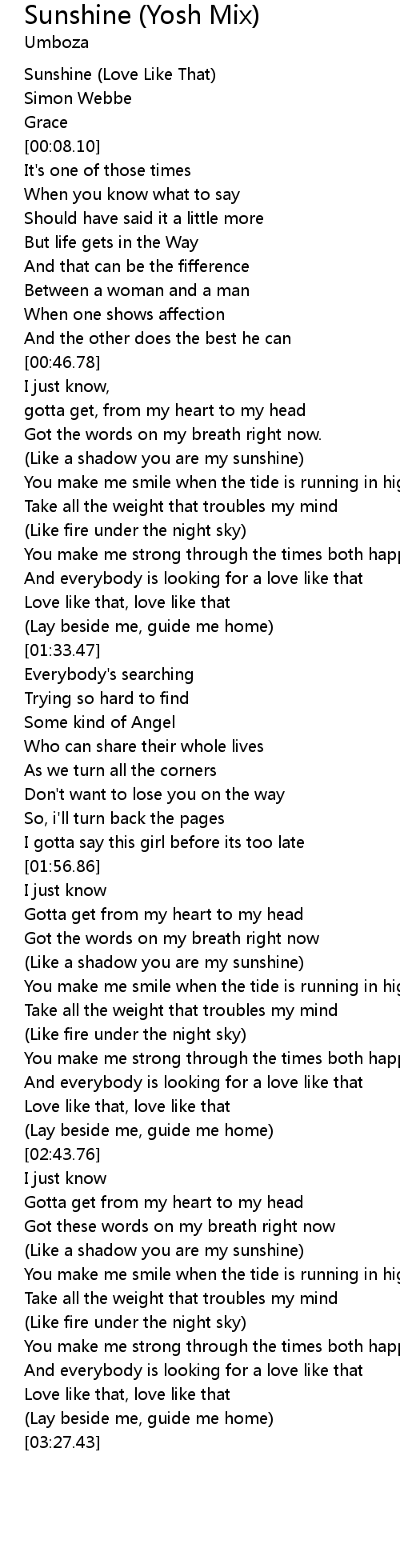 [00:00.00] Sunshine (Love Like That)