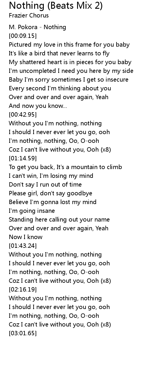 Without you I'm nothing, nothing |