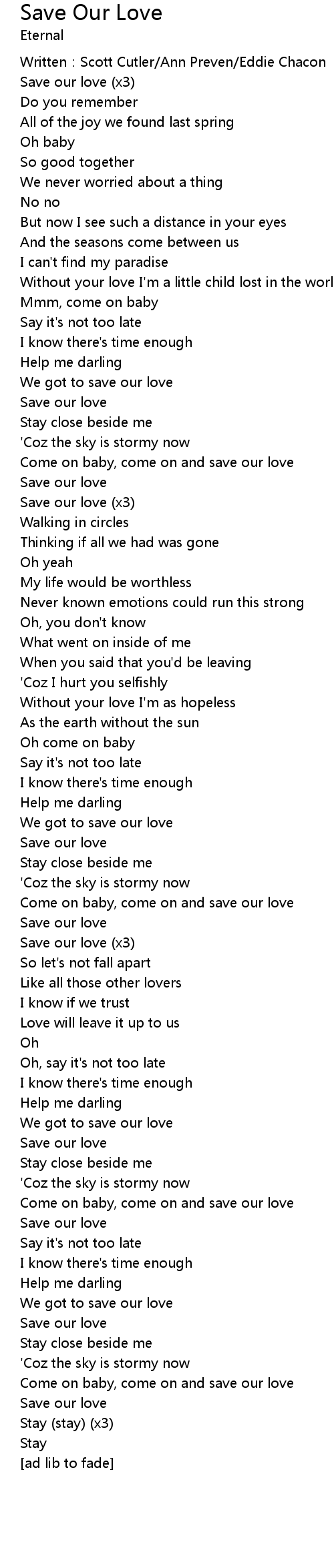 | Save our love (x3) | |