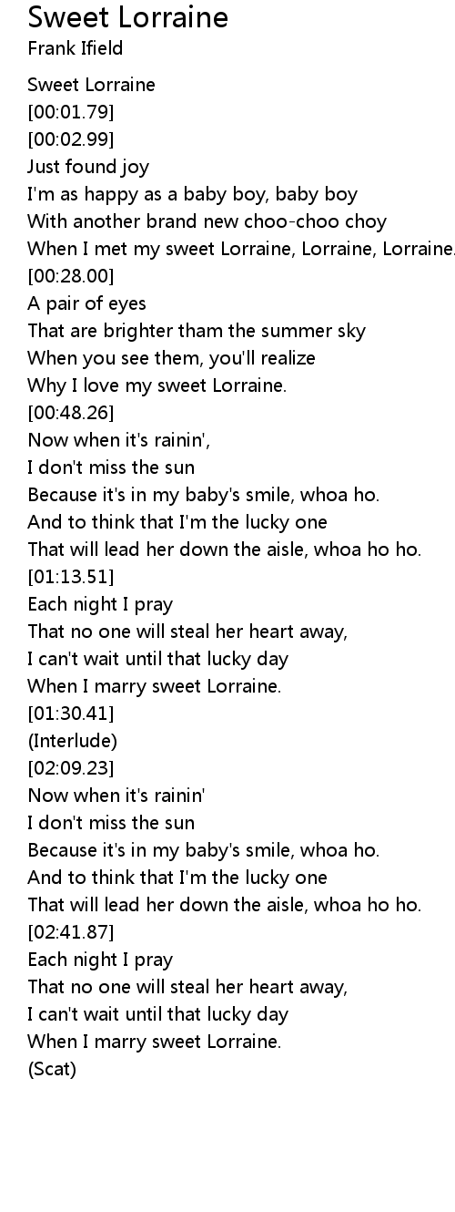 When I met my sweet Lorraine, Lorraine, Lorraine. |