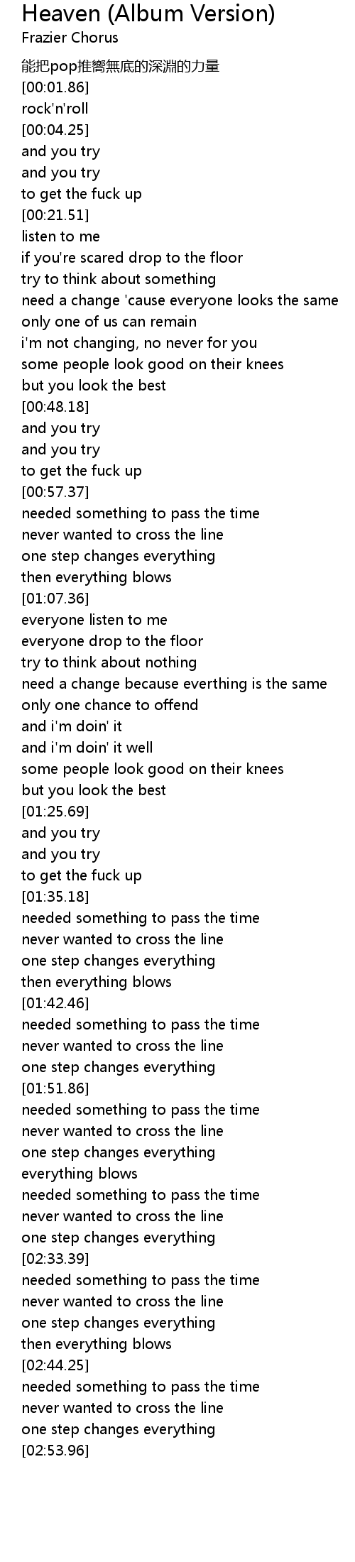 | [00:32.65] | need a change 'cause everyone looks the same |