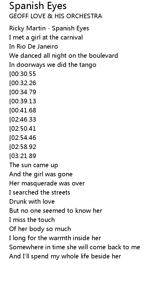 [03:26.83][03:21.89][01:06.72] Spanish Eyes...