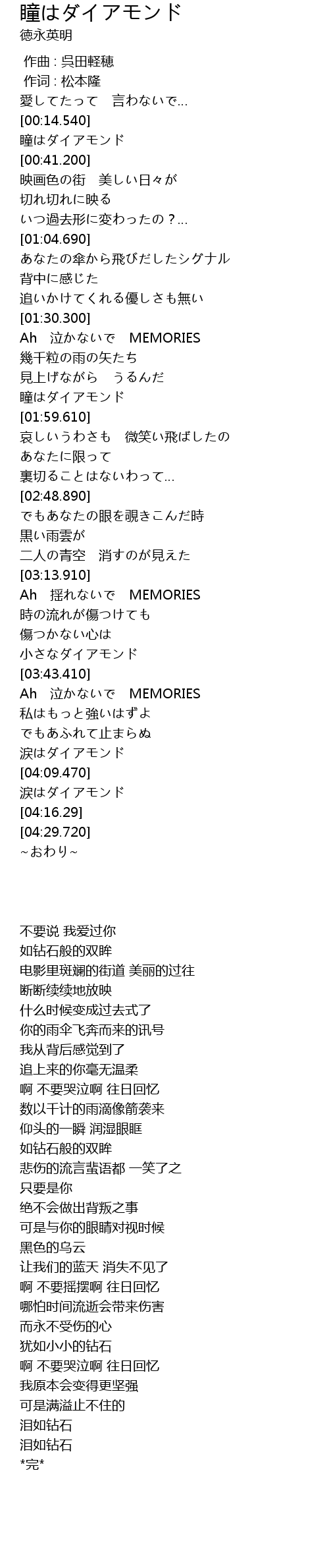 | [03:45.700] | Ah 泣かないで MEMORIES |