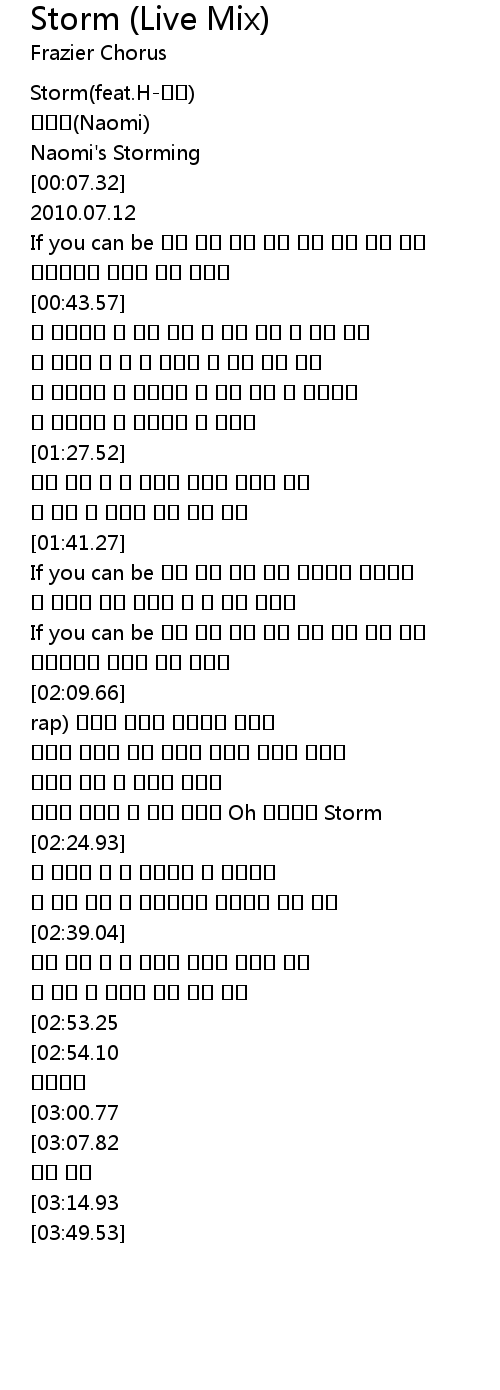 | [02:21.73] | 바람아 불어라 내 몸을 가져봐 Oh 빠져드는 Storm |
