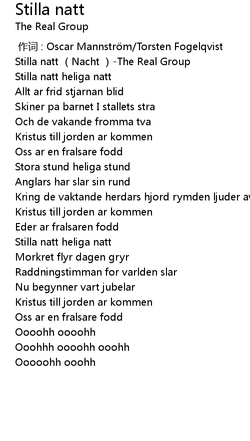 | [00:00.00] | Stilla natt Nacht The Real Group |