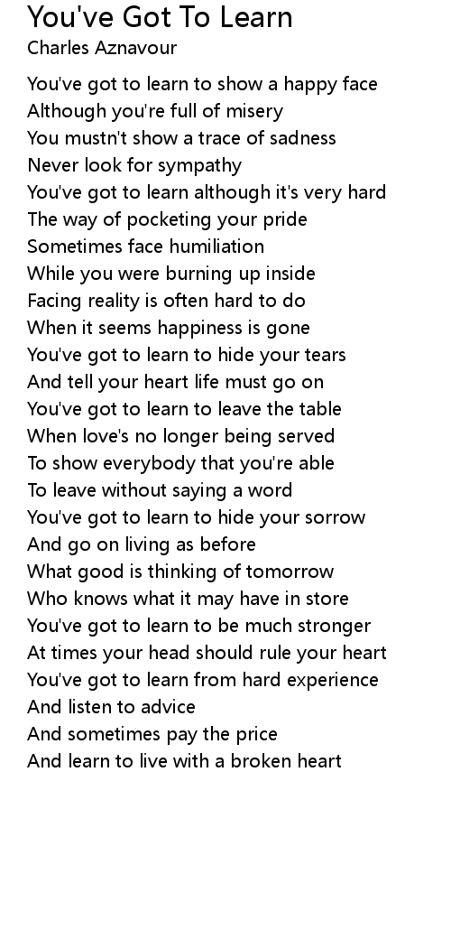 You've got to learn although it's very hard |