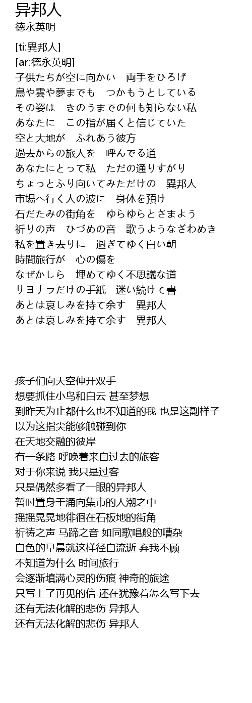 | [03:57.73] | あとは哀しみを持て余す 異邦人 |