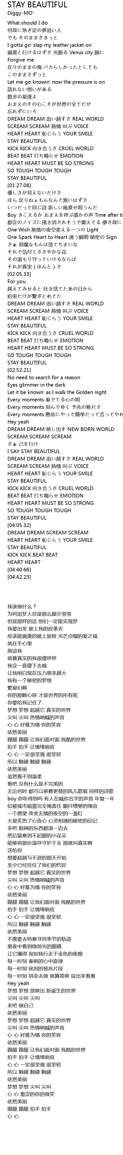 | [04:00.83] | STAY BEAUTIFUL |