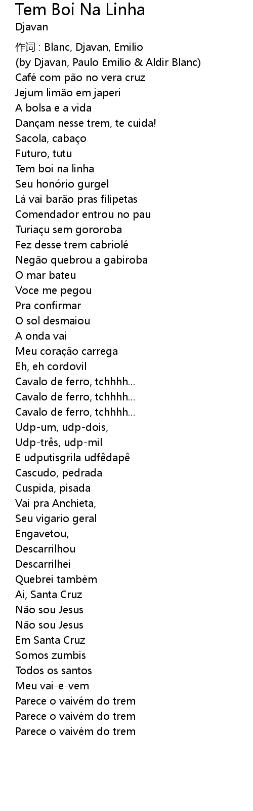 | (by Djavan, Paulo Emílio & Aldir Blanc) | |