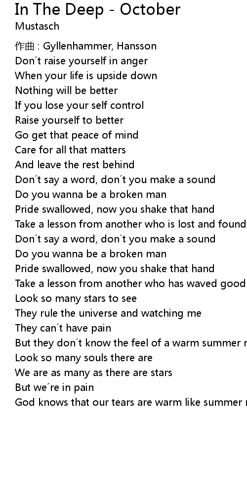 | Song | In The Deep - October |