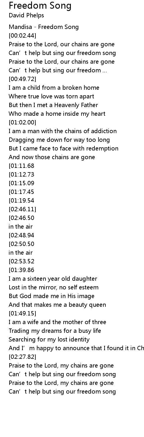 | [02:37.60] | Praise to the Lord, my chains are gone |