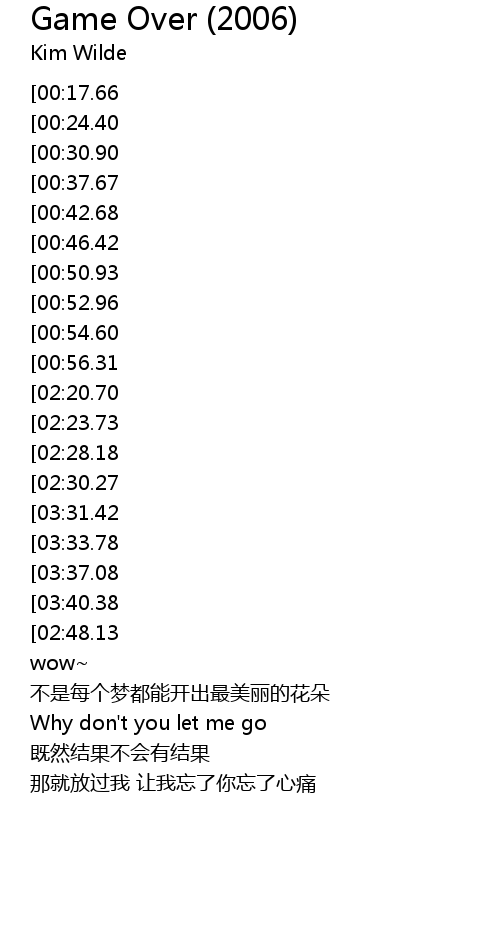 | [03:18.20][02:20.70][00:58.78] | Now game is over |