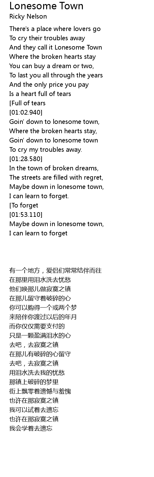 And they call it Lonesome Town |