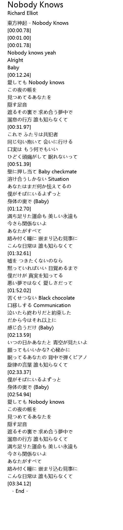 | [00:00.00] | 東方神起 - Nobody Knows |