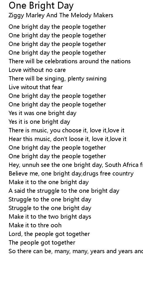 Hey, unnuh see the one bright day, South Africa free |