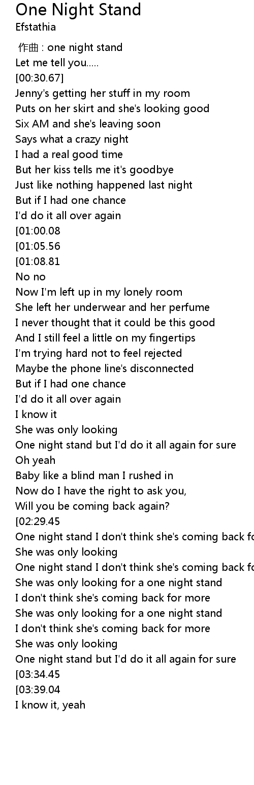 | [01:50.26][01:05.56] | She was only looking for a one night stand |