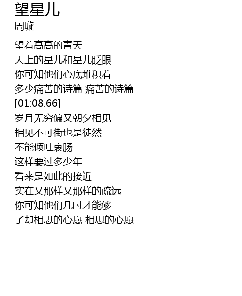 | [02:16.87] | liǎo què xiāng sī de xīn yuàn xiāng sī de xīn yuàn |