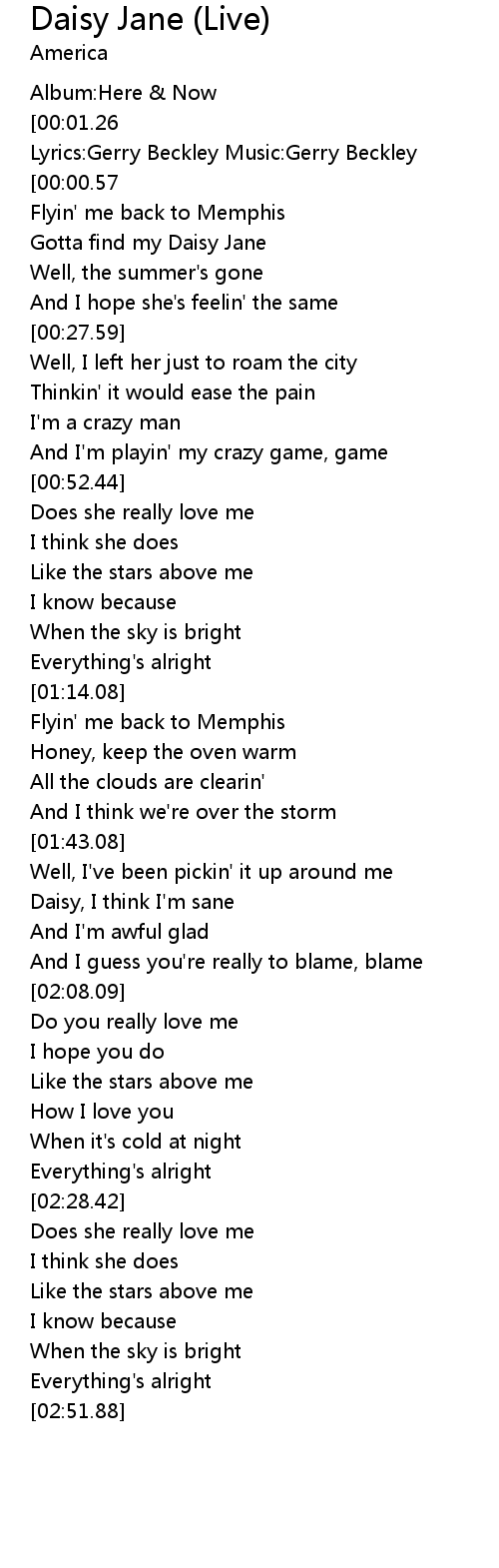 | [02:53.60][00:01.26] | AmericaDaisy Jane Live |
