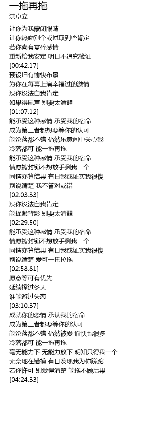 | [03:33.15] | 冷落都可 能一拖再拖 |