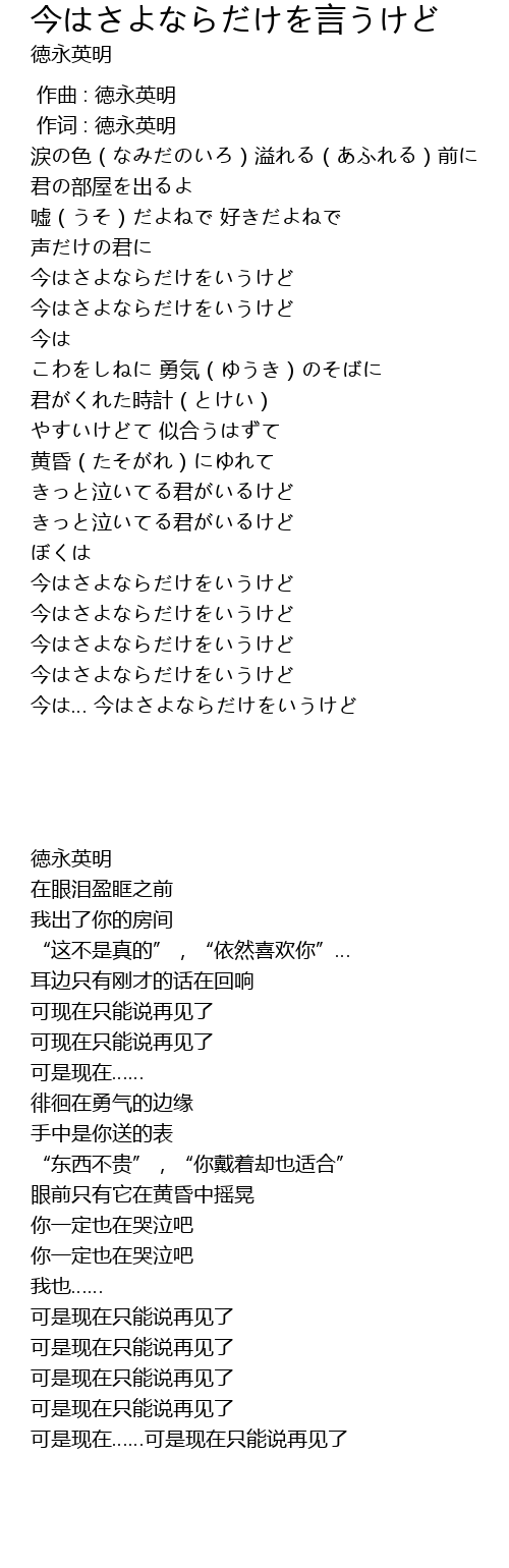 | [01:33.19] | 今はさよならだけをいうけど |